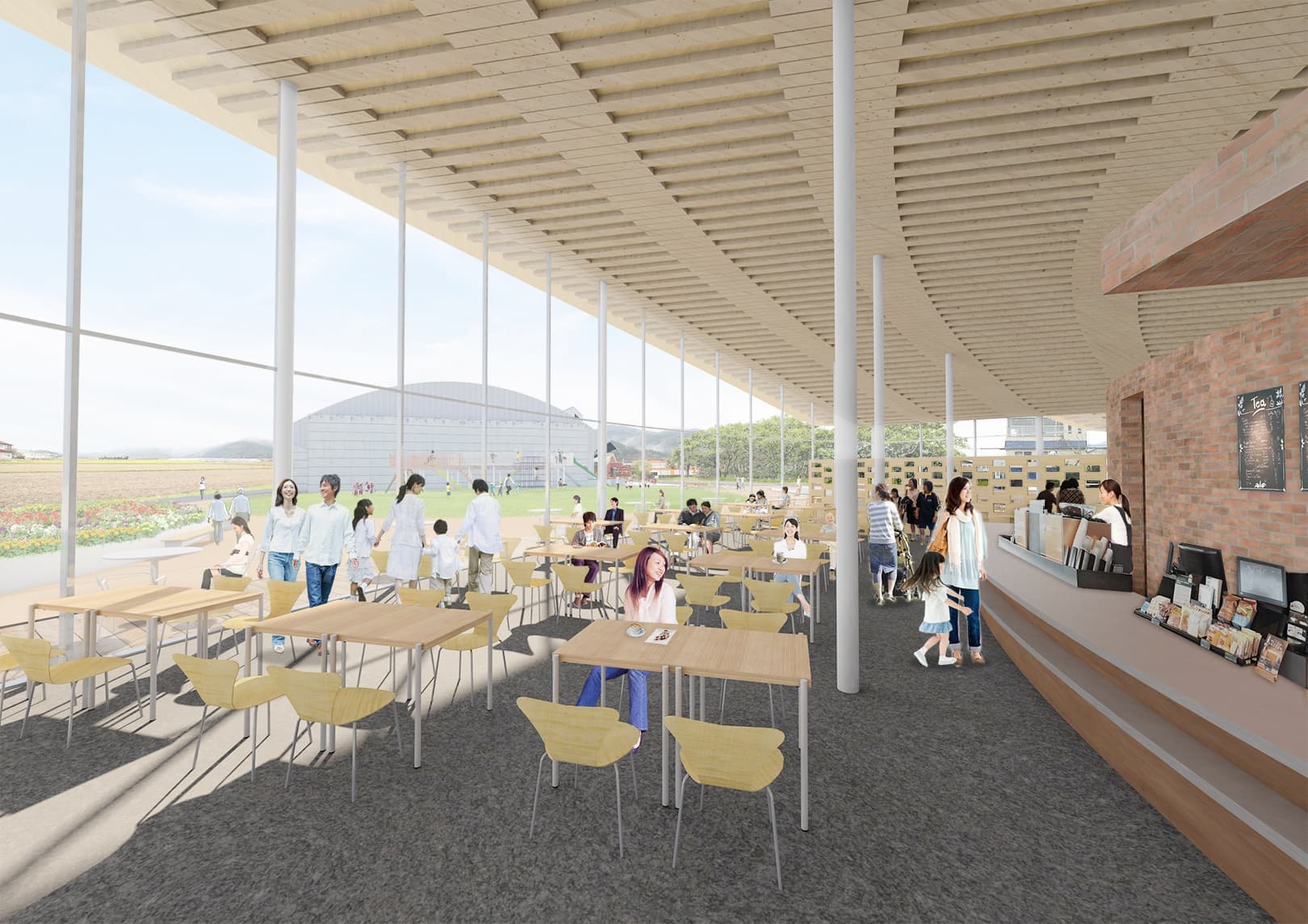 地域住民の方々も日常的に利用するレストラン・カフェは北側の田畑に向かって開かれた落ち着きのある場所に配置しています。