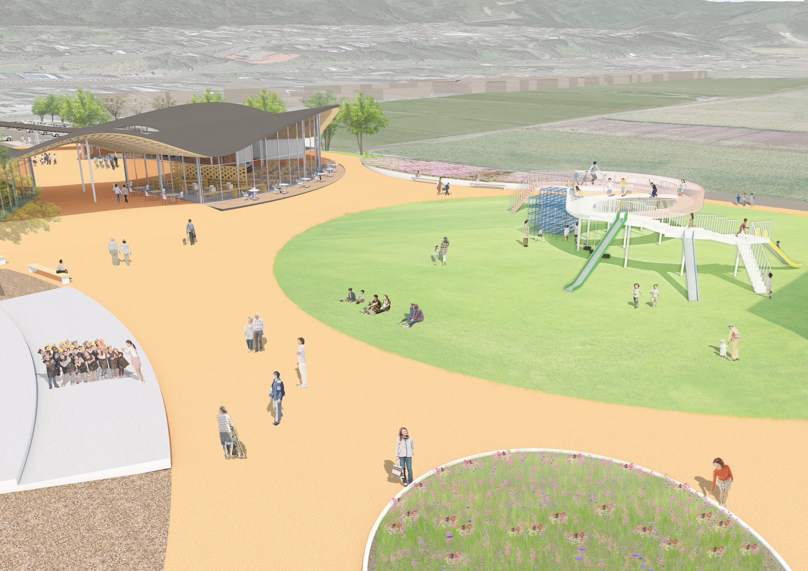 人々の活動を大らかに包むやわらかな屋根と公園のようなランドスケープは、北郷地区の新たな風景となっていきます。